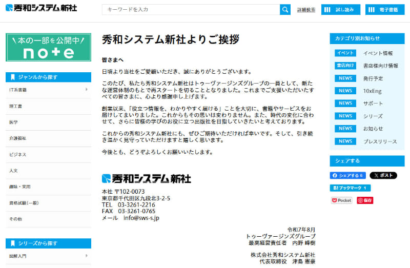 秀和システム新社が始動。読者や著者、書店、取次向けの案内も