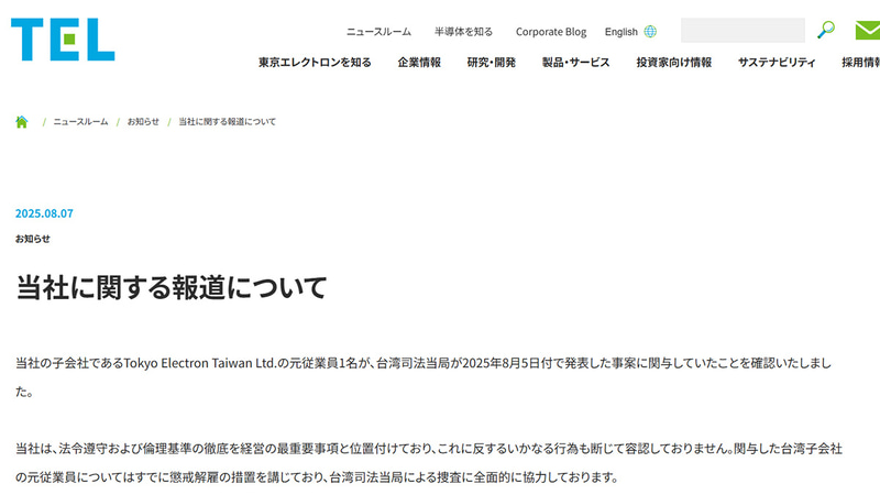 TSMC情報漏洩の狙いは2nm先端技術か。東京エレクトロン子会社の元従業員が関与