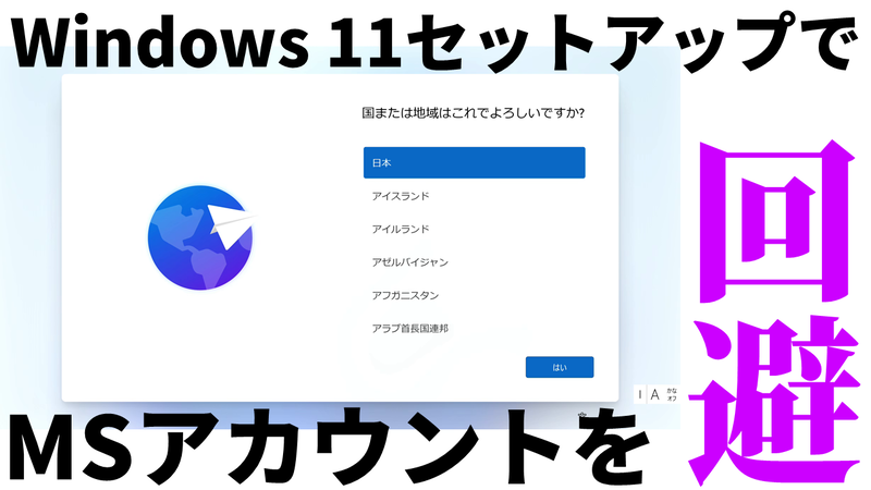 Windows 11のセットアップ時にMicrosoftアカウントを回避する方法、動画で教えます