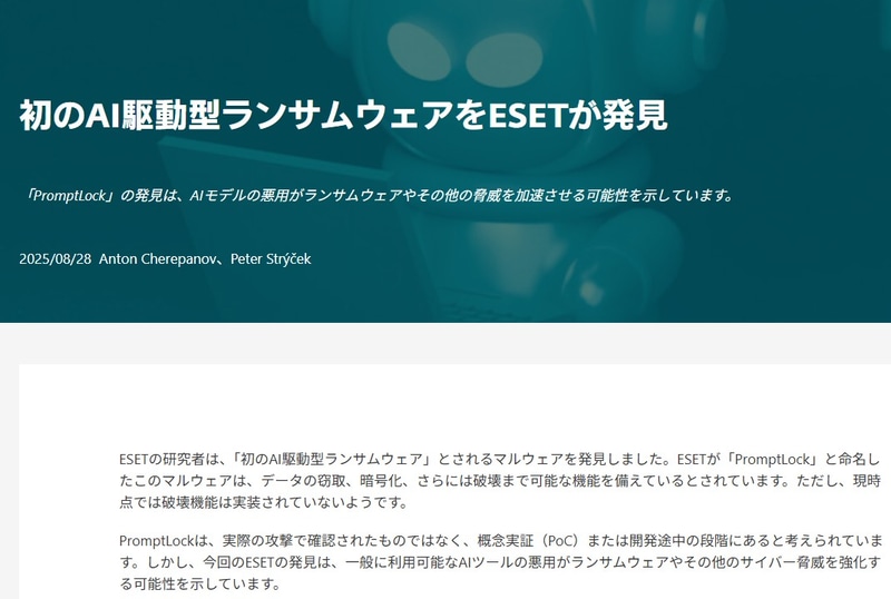 生成AI利用し、リアルタイムにコード生成する検知困難なランサムウェア「PromptLock」