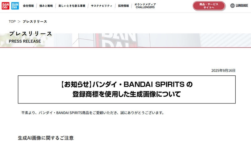 バンダイ、生成AIを使ったフィギュア画像に注意喚起。著作権侵害の恐れも