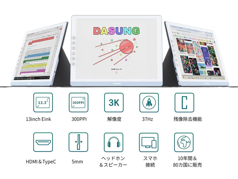 モニターとして使える3,200×2,400ドット表示対応の13.3型電子ペーパー