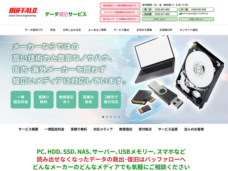 バッファロー、同社製品以外にも「データ復旧サービス」を提供
