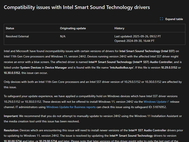 Windows 11 24H2+Intel SSTのブルスク問題が解消
