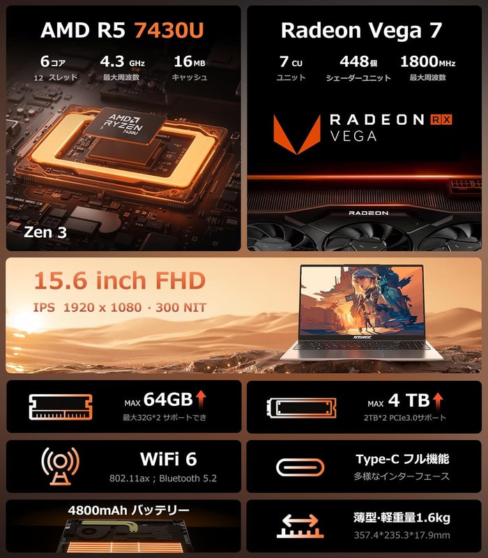 安過ぎだろ!Ryzenノートがなんと5万2,499円。メモリ16GB、SSD 512GBで必要十分。増設も可能な理想の仕様