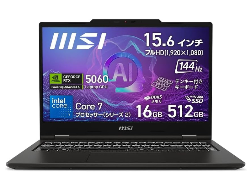 144Hz液晶のGeForce RTX 5060搭載ノートが3万円引き。AI機能に対応