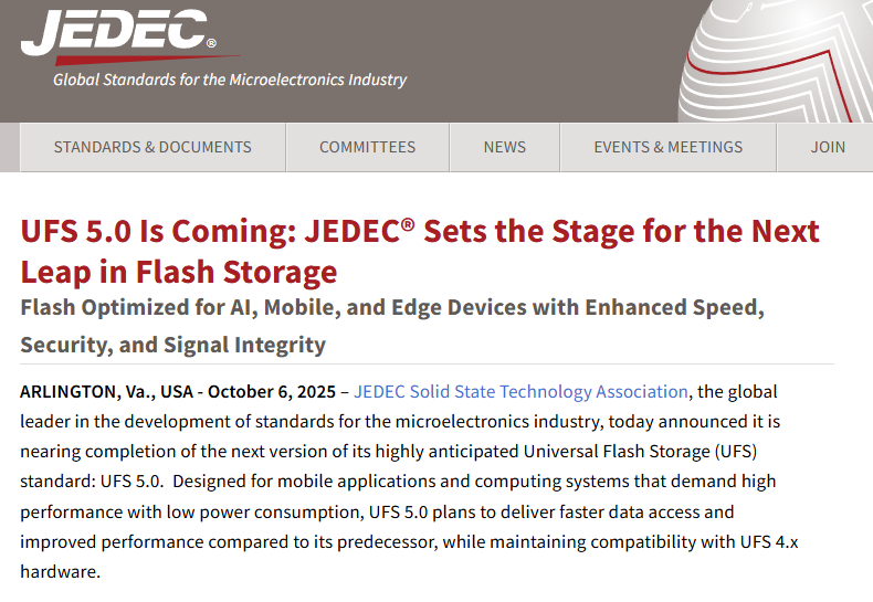10.8GB/s対応のフラッシュストレージ規格「UFS 5.0」まもなく登場