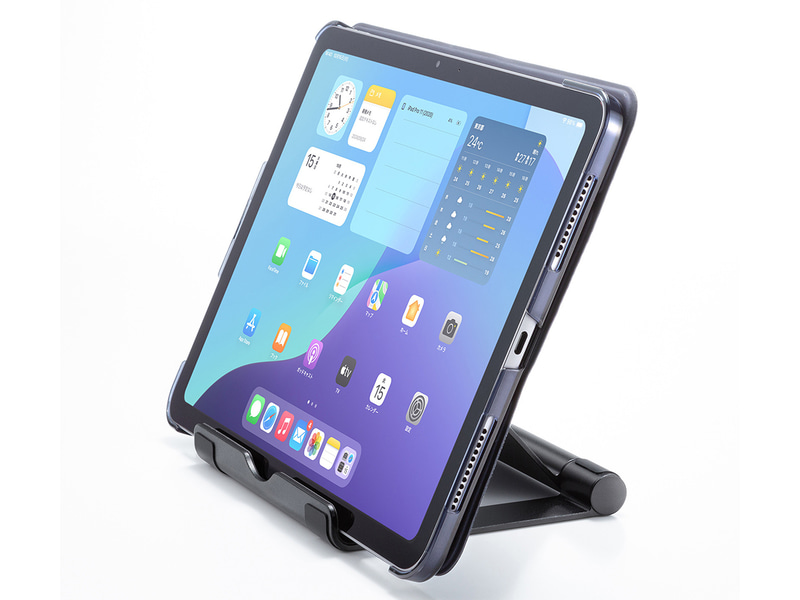サンワサプライ、4本足で自立するごろ寝用タブレットスタンド