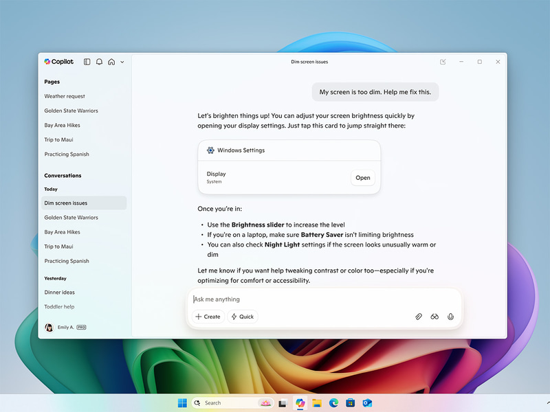 Copilotから「設定」の画面に直接ジャンプ。Insider向けに提供開始