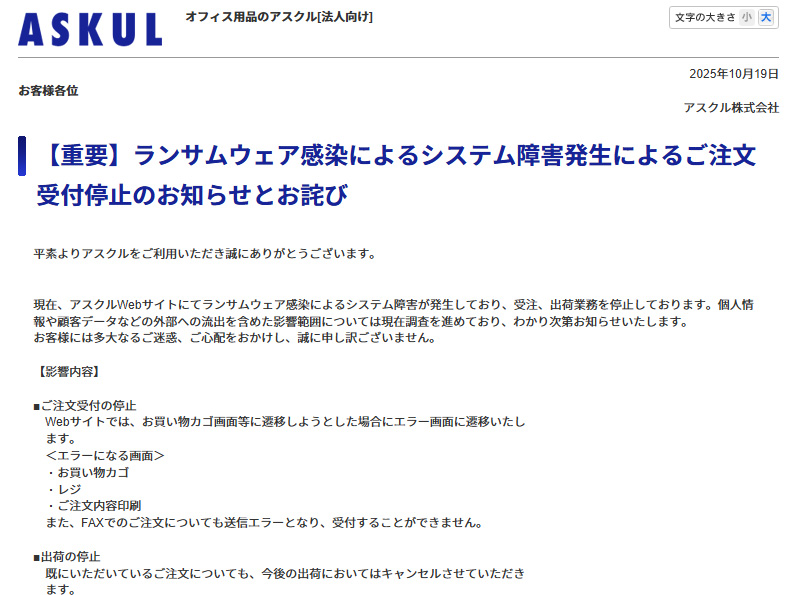ランサムウェア被害のアスクル、被害から約2カ月をへてWeb受注再開