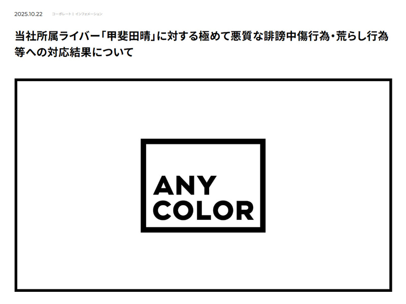 にじさんじ誹謗中傷犯、動機は「異常な承認欲求」。ANYCOLORが調査結果を公表
