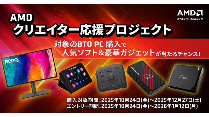 RyzenまたはRadeon搭載PC購入で、モニターなど当たるキャンペーン