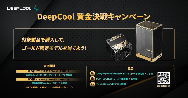 DeepCool、金色の限定PCパーツが当たる「黄金決戦キャンペーン」