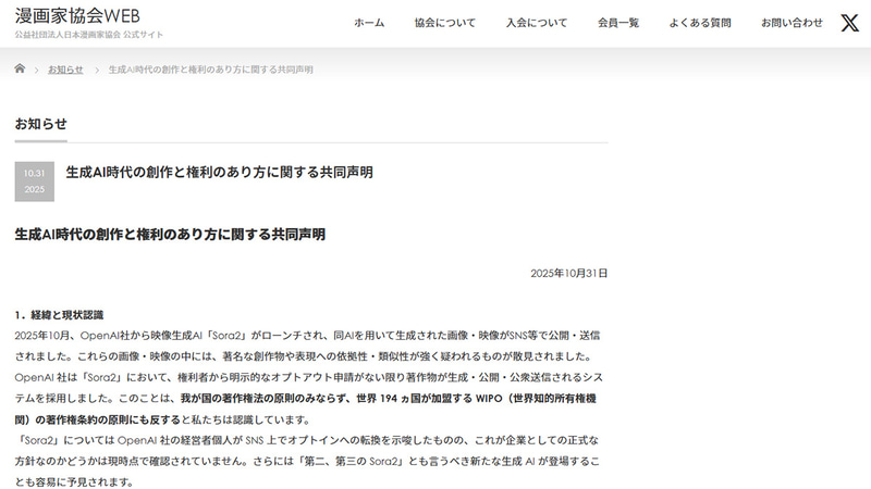城内大臣「Sora 2によるアニメ、マンガなどの著作権侵害には適切に対応」
