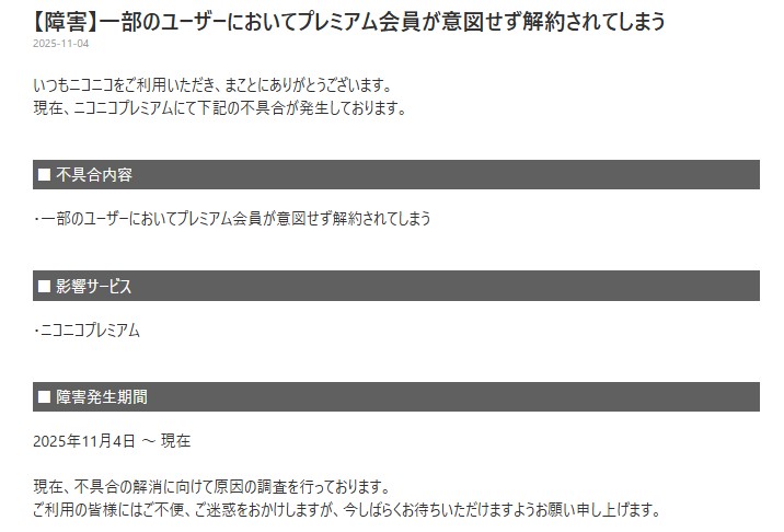 ニコニコ、一部ユーザーが意図せず退会/解約されてしまう不具合