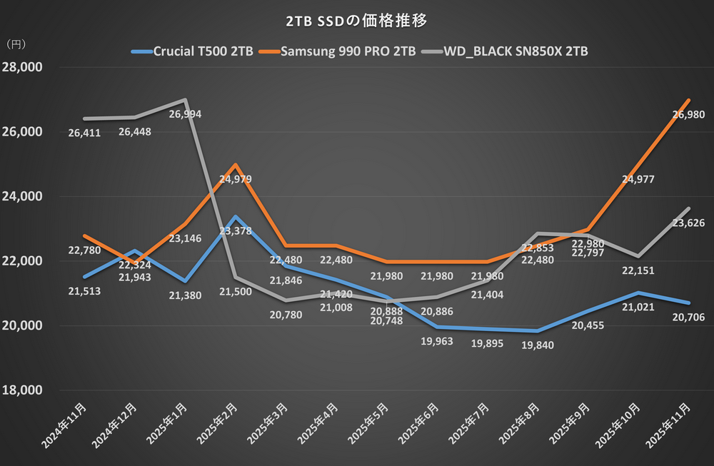 【悲報】買い時を逃したかも……。メモリ・SSD・HDDが高騰、原因はAI?価格推移をまとめてみた(6/8)