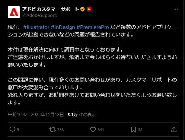 Premiere Proなどが起動できない不具合。仕事に支障の声多数