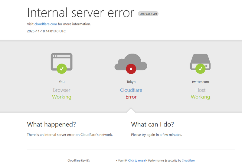 XやChatGPTで大規模障害。Cloudflareが原因