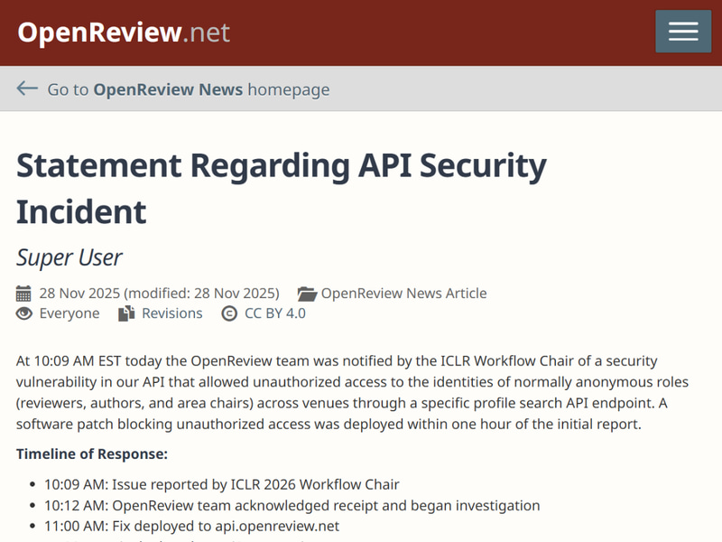 論文査読者の身元情報が漏洩。AI分野の学会などに影響