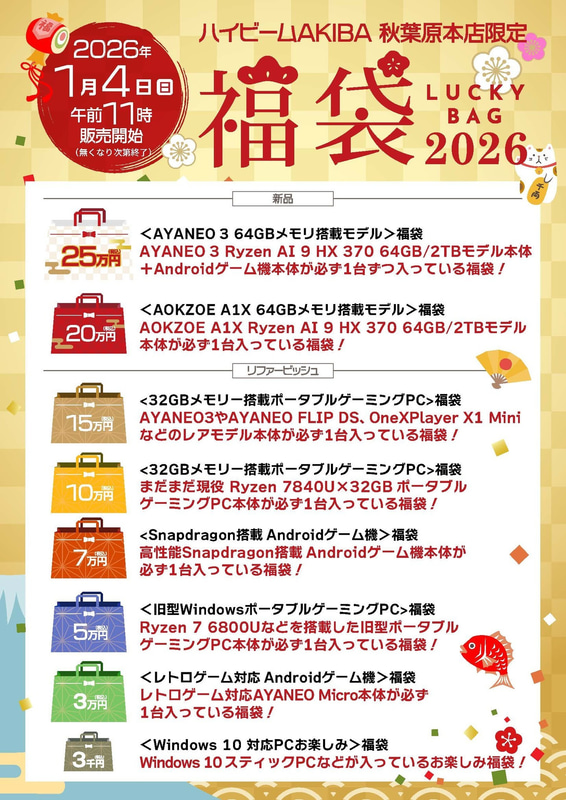 メモリ64GBのポータブルゲーミングPCが20万円で手に入る「ハイビーム2026年 新春福袋」