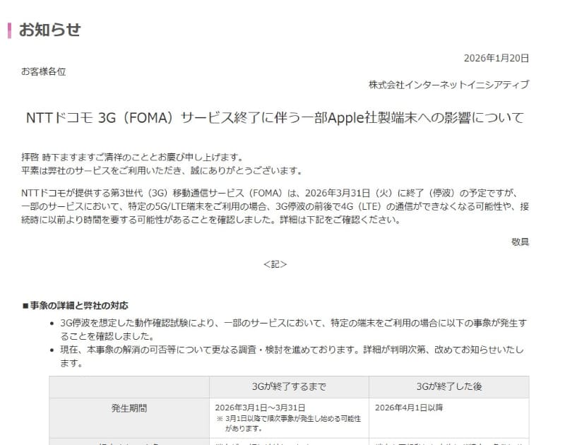 NTTドコモの3G停波でiPhoneの通信に影響が出る可能性。IIJ発表