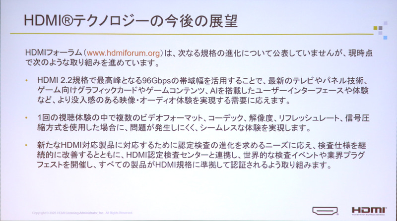 帯域幅が96Gbpsに達した「HDMI 2.2」登場