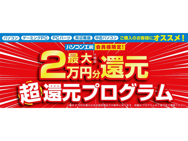 パソコン工房、対象PC購入で最大3万円分相当を還元する「超 新生活還元祭」
