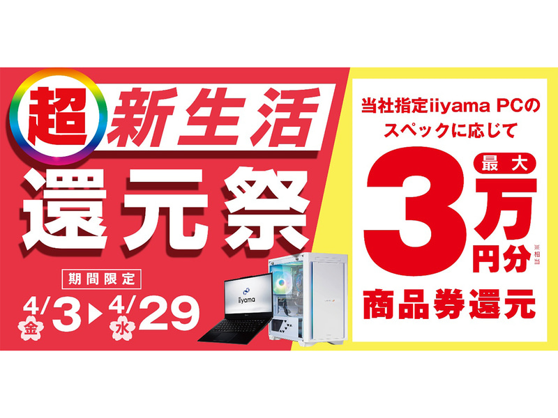 パソコン工房、対象PC購入で最大3万円分相当を還元する「決算ウルトラ還元祭」